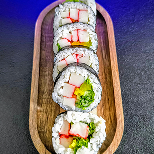 Futomak łosoś 6szt, Futomak łosoś pieczony 6szt, Futomak Tuńczyk 6szt, Futomak Okoń w panko 6szt, Futomak krewetka w panko 6szt, Futomak paluszek krabowy 6szt, hosomaki losoś i ogórek 8szt, hosomaki tuńczyk i ogórek 8szt